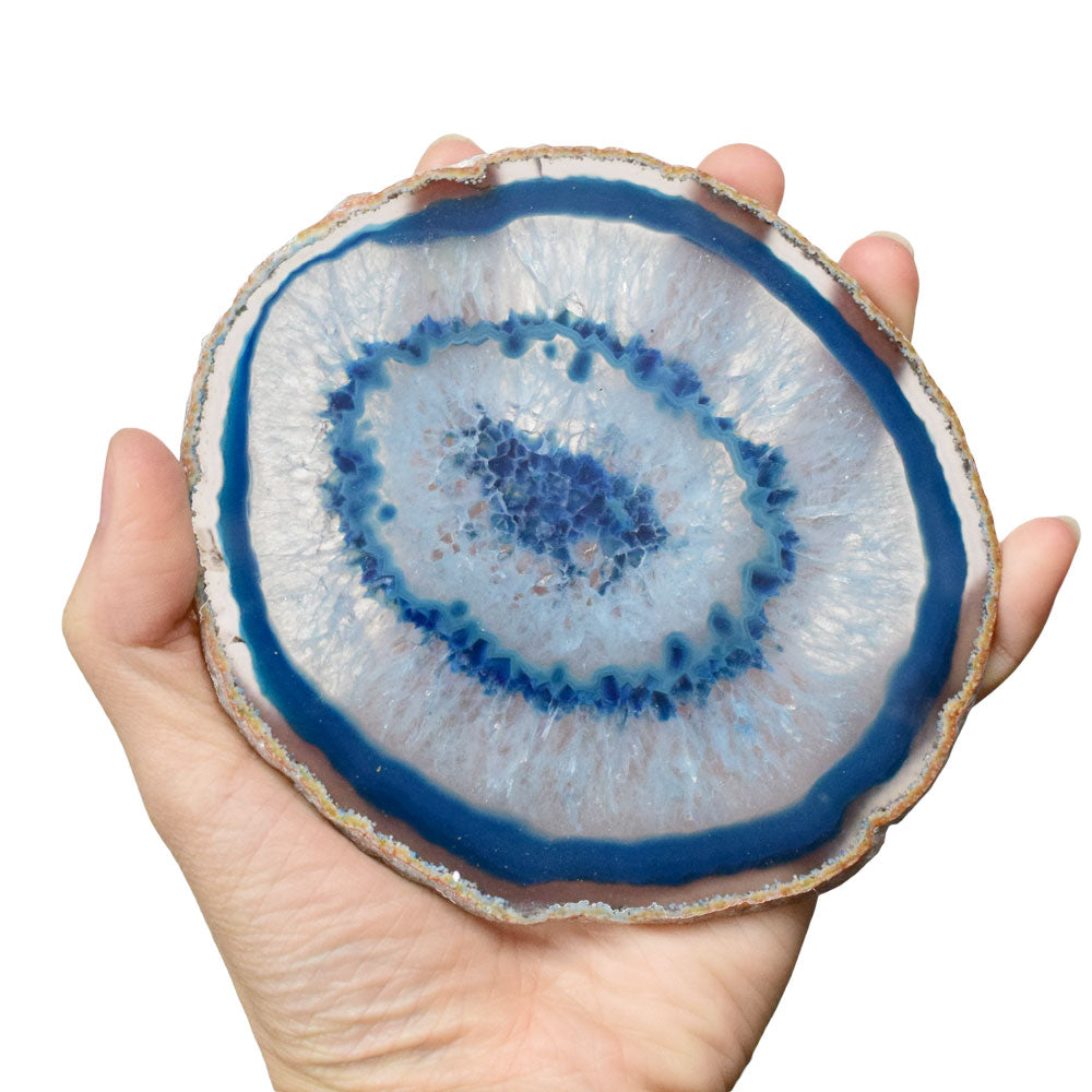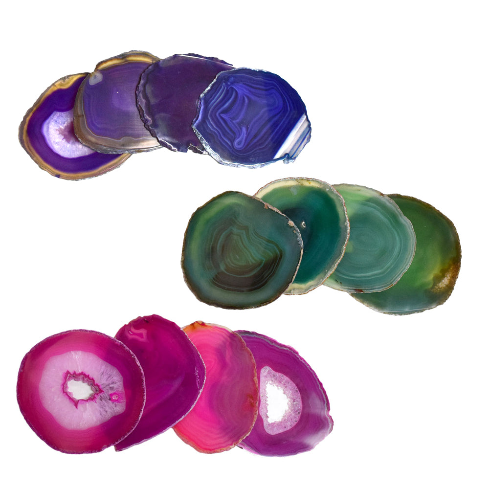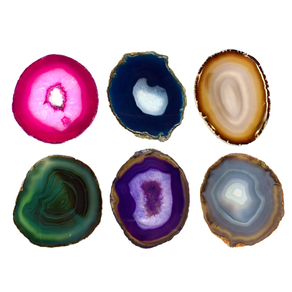 Our agate slice coasters add a touch of earthy elegance to your space. Each piece is a one-of-a-kind creation from nature, showcasing mesmerizing colors and patterns. They are perfect for protecting your surfaces in style or gifting to a loved one who appreciates unique, natural beauty.