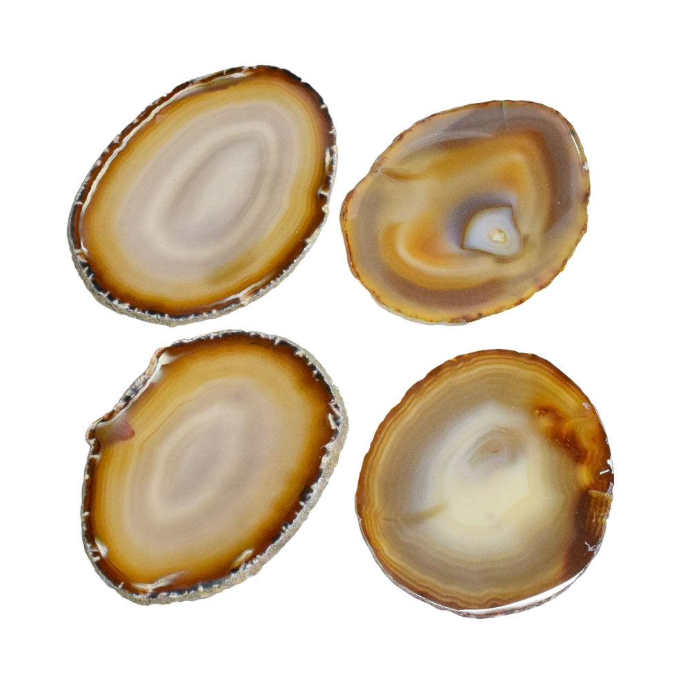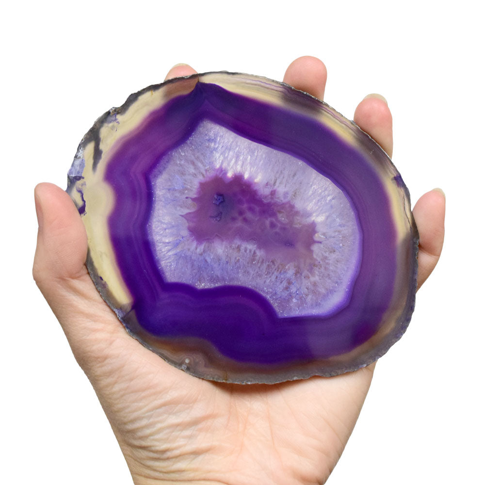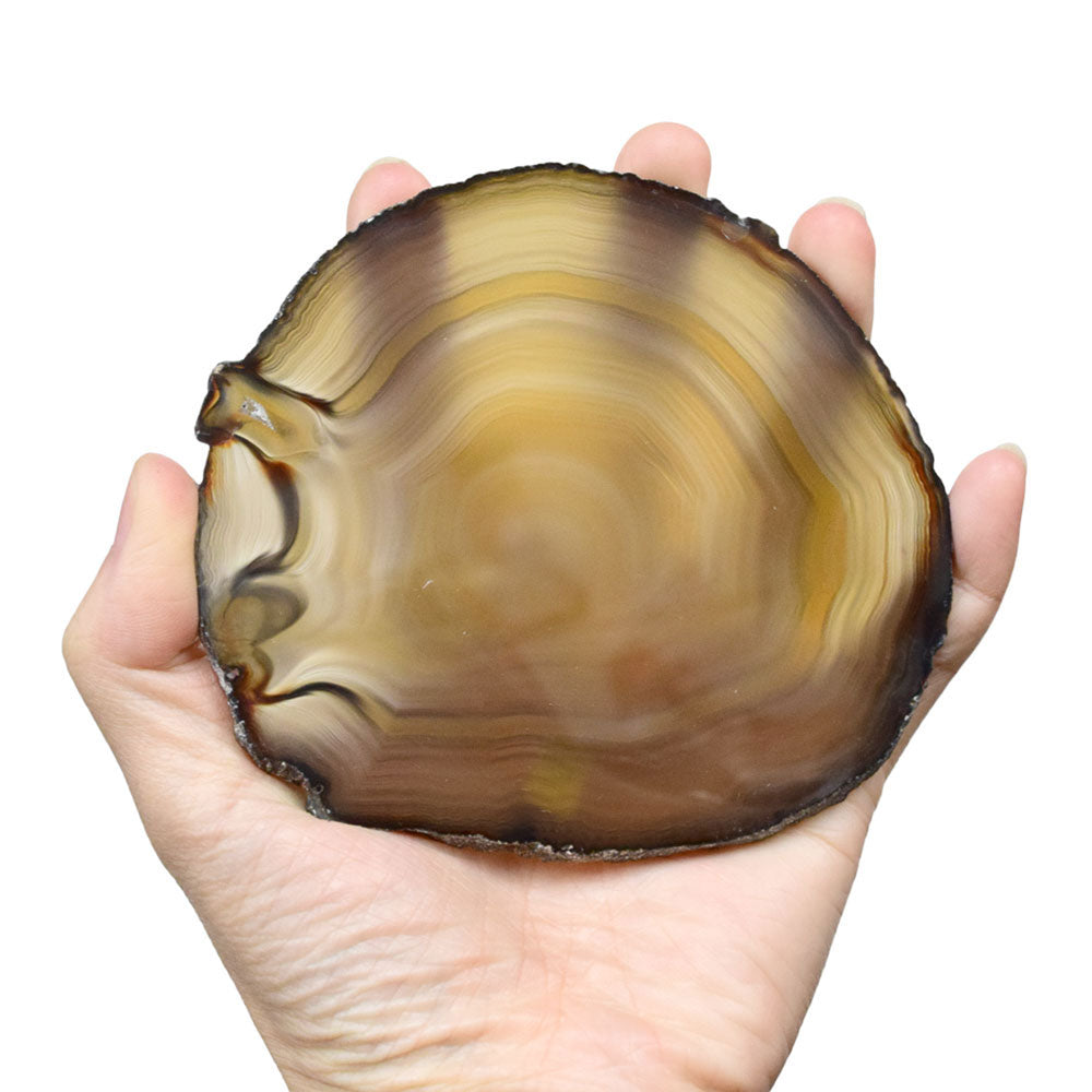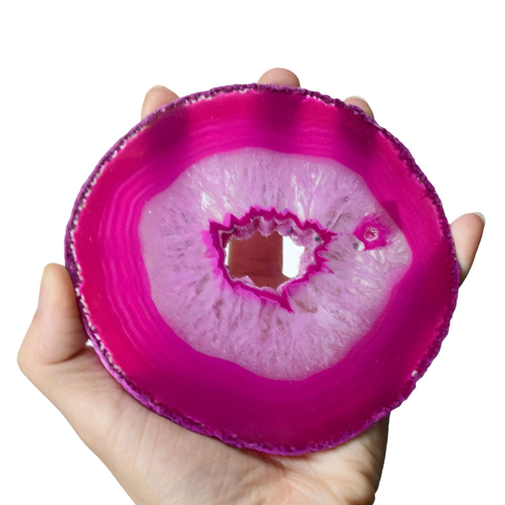 Our agate slice coasters add a touch of earthy elegance to your space. Each piece is a one-of-a-kind creation from nature, showcasing mesmerizing colors and patterns. They are perfect for protecting your surfaces in style or gifting to a loved one who appreciates unique, natural beauty.