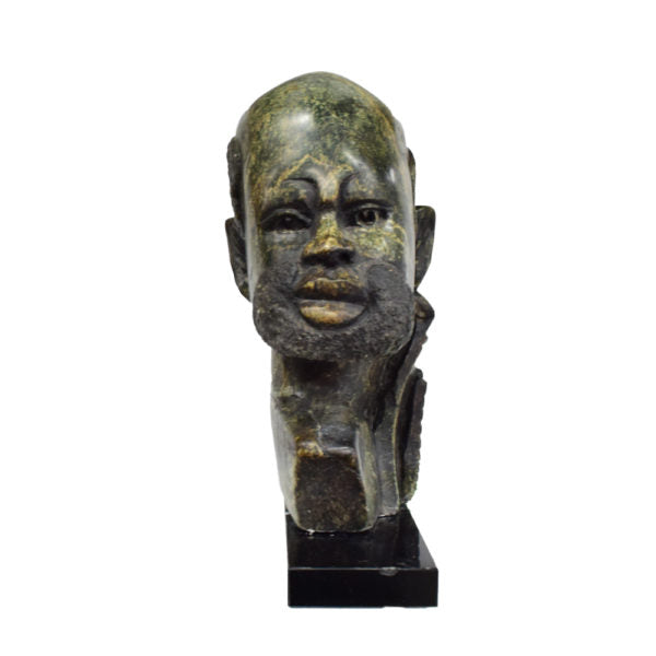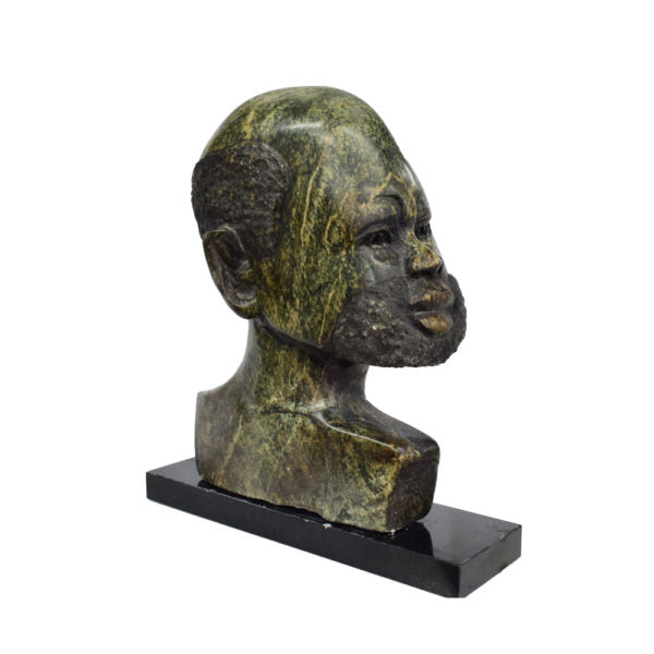 Immerse yourself in the rich legacy of African art with this 'Gaze of Wisdom' sculpture, a hand-carved verdite stone bust from Botswana. This remarkable piece captures the contemplative beauty and serene strength of its subject, making it a profound addition to any art collection.