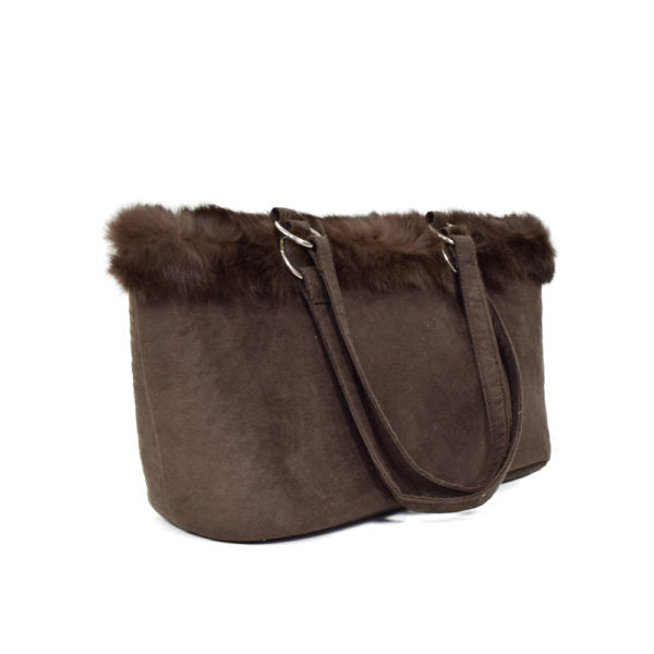Introducing our stunning Brown Suede Bag crafted from premium sheepskin fur. The feel of the fur adds a touch of luxury. The brown shade and velvety suede texture create a unique, one-of-a-kind look. It's spacious and elevate your style with this timeless accessory.